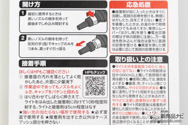 まずは裏面の開け方・接着手順を確認。流れをつかんだら作業をスタートしよう。