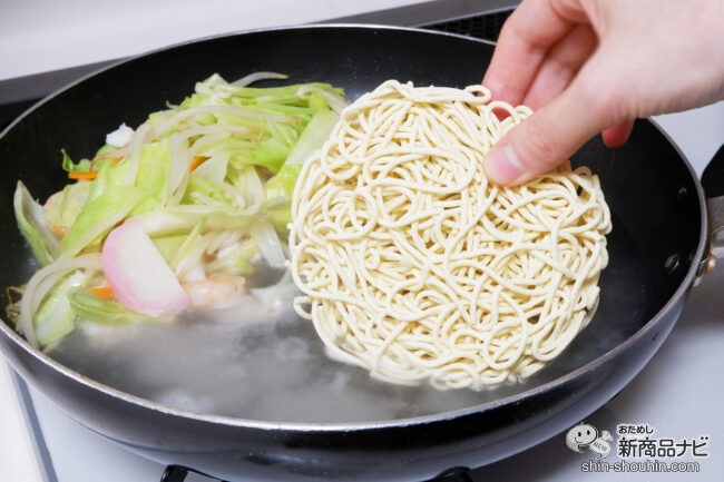 今回は具材を加えて調理したが、具材なしで調理しても十分美味しそう。その場合は、沸騰させてお湯にめんを入れて4分間ゆで、粉末スープと調味油を加えるだけ。
