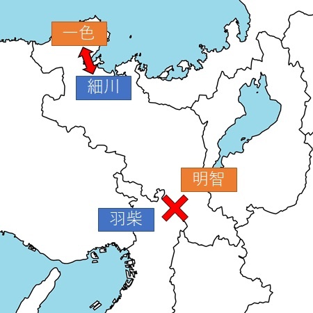 当時、細川家は丹後国(現在の京都府北部)南部に拠点を置いていたのですが、丹後北部の一色家が光秀に味方することを表明していました。