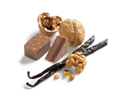 クルミとチョコレートとバニラが斬新で繊細な味わいをもたらすコレクション限定の特別ビュッシュ。クルミ入りの軽やかなビスキュイに覆われたクルミのプラリネは、キャラメリゼしたクルミの食感に加え、たっぷりのダークチョコレートのムースと一緒に、ミルクチョコレート&バニラのクレムーで構成されています。