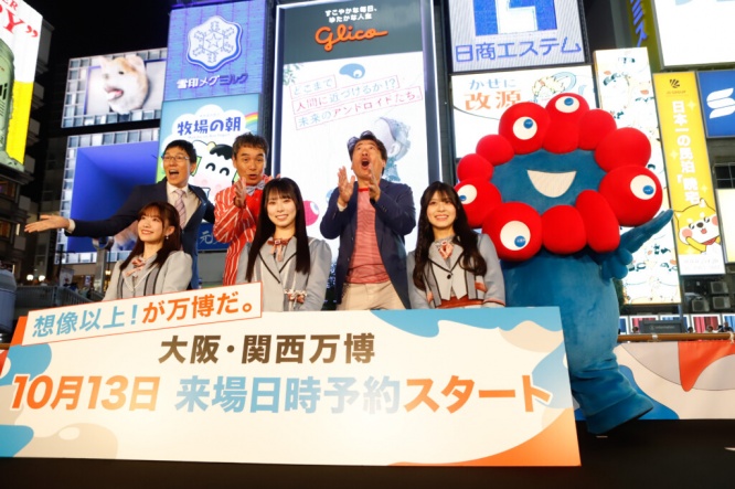 NMB48(板垣⼼和、⿓本弥⽣、松岡さくら)&ダチョウ倶楽部登場! 『大阪・関西万博』 半年前イベント in 道頓堀開催!!