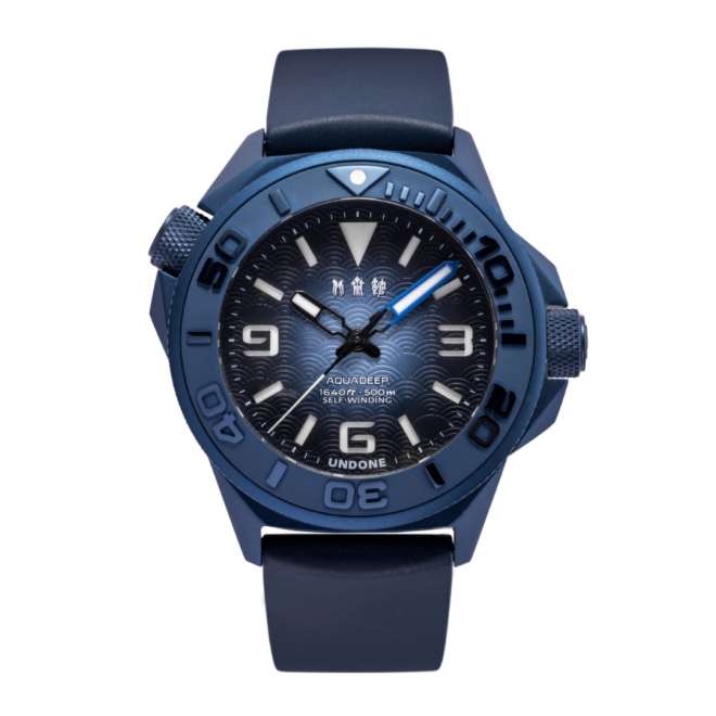 本アイテムは、UNDONE生誕10周年を記念した、北斎館との公式コラボウォッチです。ベースとなるのはUNDONEの本格ダイバーズウォッチAquadeep。葛飾北斎の傑作からインスピレーションを得た、日本の伝統美と最新技術を融合した『新たな波』を表現。