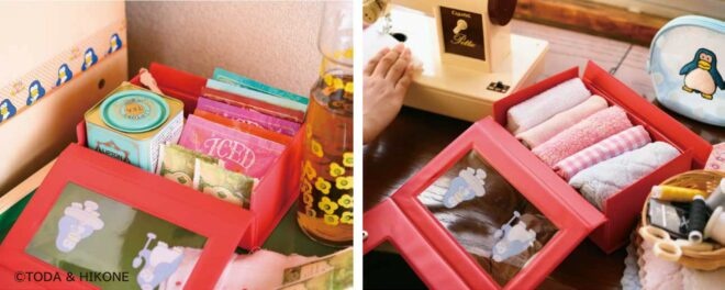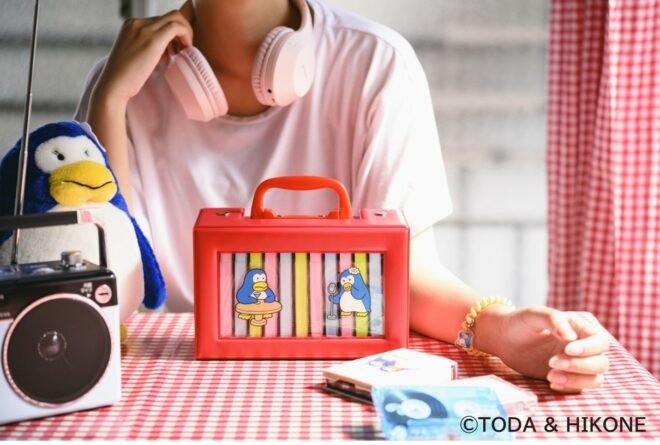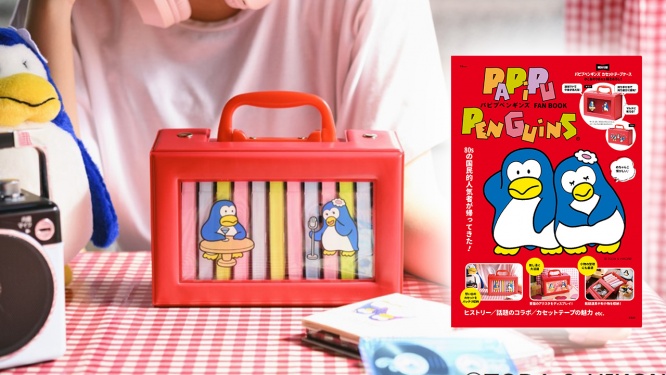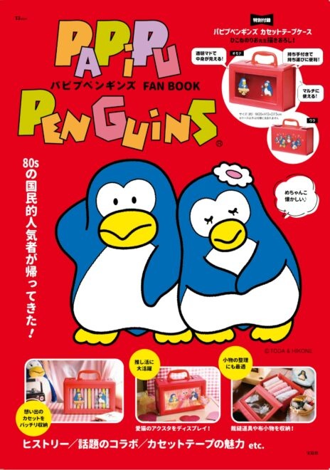 今回発売されたムック『パピプペンギンズ FAN BOOK』には、イラストレーター・ひこねのりお氏による描きおろし“両A面“イラスト入りで、レトロテイストな赤が印象的な「カセットテープケース」が付録に。