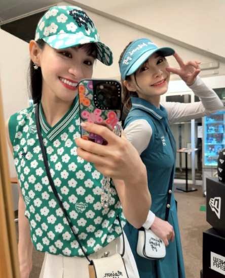 公開された写真では、ミニスカのゴルフウェアに身を包むPerfumeの3ショットなどが複数枚披露された。