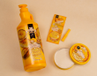 かわいい洗面所には「su-ha」のクレンジングや洗顔料、そして「はなほのか」シリーズのヘアオイルも。バスルームには「まゆごもり」シリーズのシャンプー・コンディショナー・ボディソープが用意されているので、頭からつま先まで全身をよーじやのアイテムでケアできます。su-haは洗顔料、化粧水、乳液がそれぞれ2種類あり、自分の肌にあったものを選べるのも魅力的です。