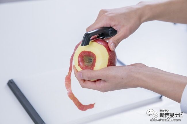 リンゴのような丸い食材は、包丁のような感覚で剥けるのも新鮮。