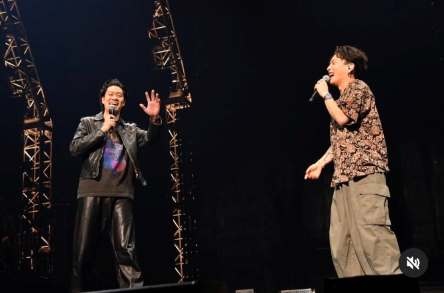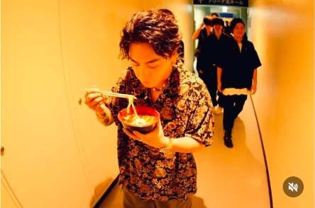 舞台上で仲良くポーズをとる様子や、爆笑する仲良さげなショットのほか、ステージ裏でうどんを食べるオフショットも公開しているが、ファンの関心は別のことろに。