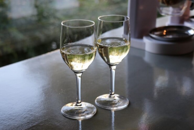 ソフトドリンクは無料、ワインは有料ですが、チェックインのときにワイン1杯がサービスとなるコインをもらえたので、セルフ式のサーバーから白ワインをいただきました。ディスペンサー式のミックスナッツやスナックもあり、ディナー前に軽く飲みたいときにぴったりです。