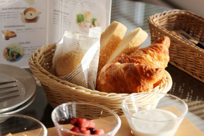 毎朝焼き上げるホテルメイドのパンは熱々の状態でサーブされます。どれもおいしいですが、特産の阿波三盆糖をふりかけたヴェロネーゼ(イタリア風揚げパン)がとくに気に入りました。