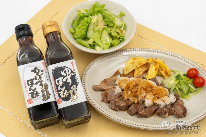 さまざまな料理に合う『かぼすぽん酢』と『ゆずぽん酢』を、今回はサラダとステーキでおためししよう。