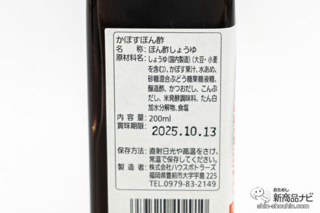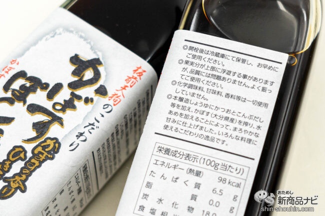 原材料は、まるごと国産原料を使用。かぼすぽん酢と同じく、化学調味料や甘味料、香料などを使わず作られた自然素材の風味を活かした仕様だ。