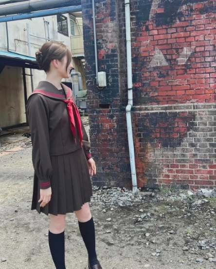 添えられた写真では、金髪にマスクをつけた制服姿など、撮影中のオフショットを披露した。