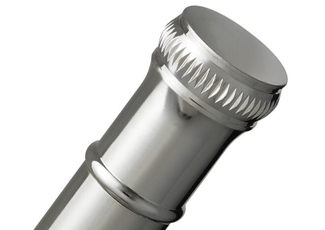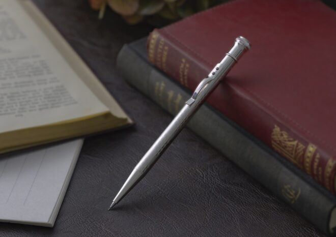 内部にはより現代技術を取り入れ一般的な0.5mm 芯方式とし、新しい芯繰出し機構を採用。天冠リングには回転ノック時に指の滑りを抑える微細な彫刻を施し、機能性と装飾性を両立させています。