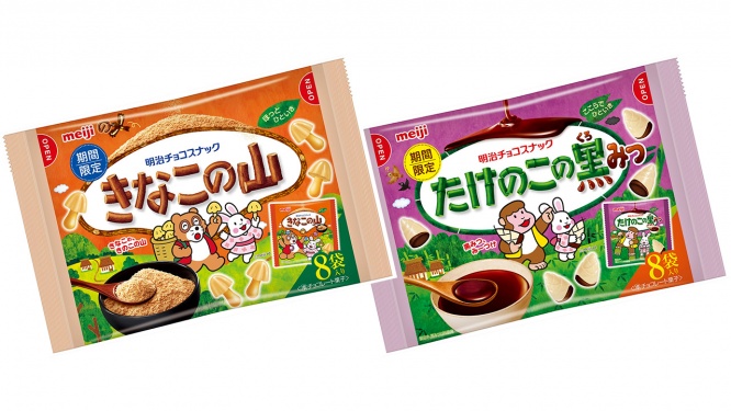 明治の人気チョコ菓子「きのこの山」と「たけのこの里」から、和素材を使った新商品が登場。その名も、「きなこの山」そして「たけのこの黒みつ」です。