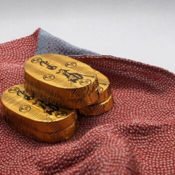 訪問客は刀だけ差してきたわけではなく、屋敷の廊下には小判のほかにも客からの贈答品がうず高く積まれていました。