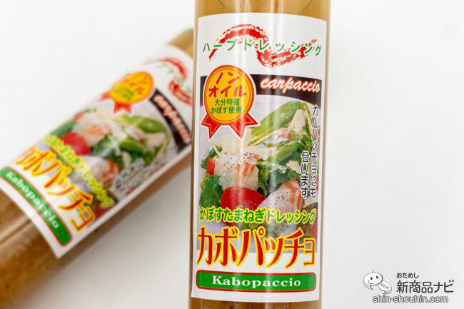 『カボパッチョドレッシング』は、大分県特産の「カボス」を配合した同社人気のノンオイルドレッシング。「魚も野菜もこれ1本で美味しくなる! 」と評判の味は、ロングセラーのひとつになっている。