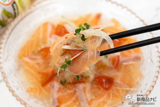 魚介とドレッシングの融合した味が楽しめた。甘みがたつ魚介の味わいに、シャキシャキとした食感がプラスされ丁寧に料理されたような仕上がり。サッとかけただけの一品だが贅沢な印象になった。味がしっかりとしているので、さっぱり系の魚介にもピッタリだろう。