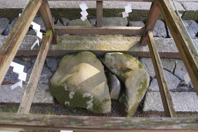 同社の「陰陽石」は、社殿前の「子授石」と社殿下の磐座の二石あり、「子授石」が陰石、磐座が陽石とされます。