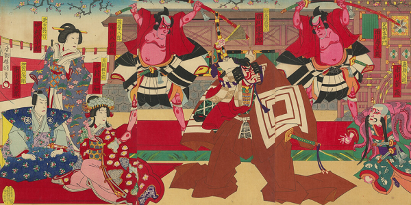 舞台の上では華やかな役者たちだが……三代目歌川国貞「吉例 暫」