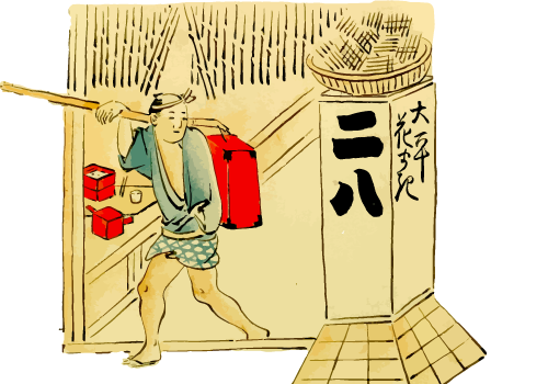 明和7年(1770年)に出版された洒落本『遊子方言(ゆうしほうげん。作:田舎老人多田爺)』にも釣瓶蕎麦が登場しています。