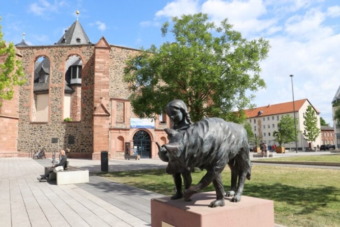 ハーナウの中心地にはグリム童話に出てくるキャラクターの像が点在しています。教会のすぐ近くにある赤ずきん(Rotkäppchen)の像もその一つ。