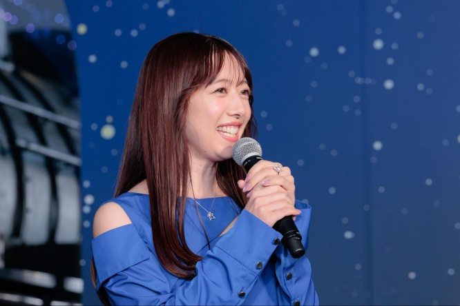 この日のファッションでは、作品への深い敬意を込めて鮮やかなブルーのワンピースを着用した真山は、「汽車の中から見える夜空をイメージしました」と説明。さらに、「人生で初めてジュエリーというものを身につけました。私立恵比寿中学は学校コンセプトのため、普段はジュエリーを身につけることがないんです」と明かし、世界観を重視したコーディネートに、共演のDJ KOOを驚かせた。