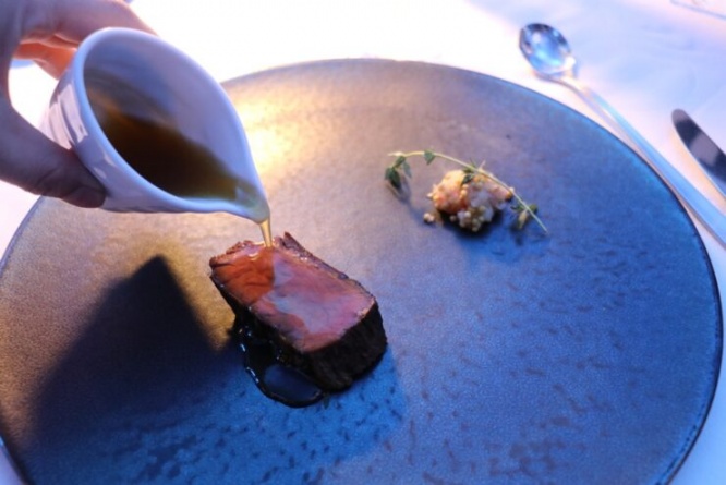 お肉はやわらかく、とろけるような舌触りで、黒胡椒のソースでさらに旨みが引き立ちます。サラダバーのみビュッフェスタイルですが、それ以外の料理はコース仕立てて、席に座ったまま最適な状態でサーブしてもらえるので、ゆったり優雅に過ごせるのもよいなと感じました。