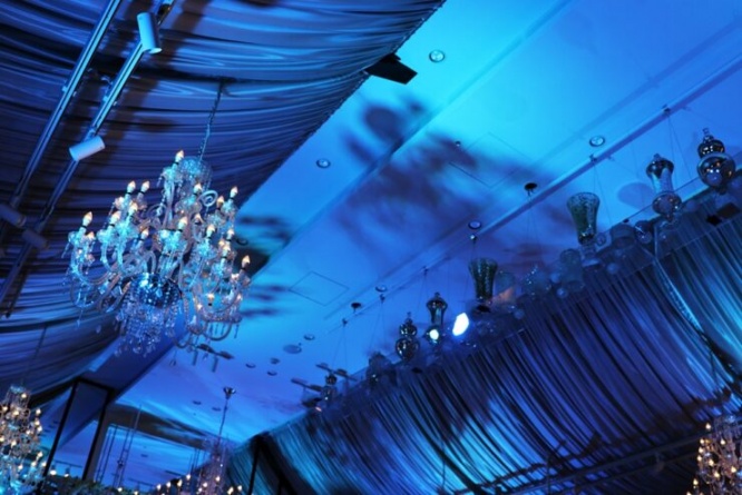 リストランテ マーレ ブルーは期間中の特定日の18時から21時の開催(2時間制)で、早めの時間はガラスドームからの差し込む日光のおかげで明るく白っぽく見えるのですが、日が落ちるにつれて青色のライトが織りなす幻想的なブルーの空間へと変化していきます。