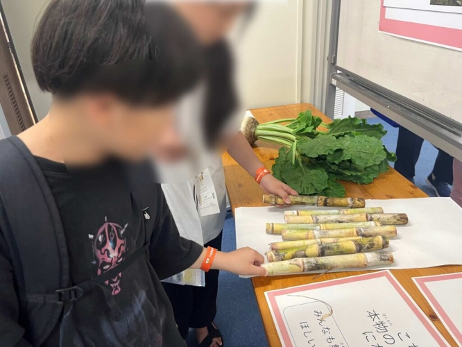 こちらのプログラムでは、水に溶かしたでんぷんを袋の上から触ったり、砂糖の粒を顕微鏡で見たりすることができます。