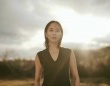 比嘉愛未は黒のロングワンピースに白のシャツを羽織った落ち着きのあるコーディネートで登場。大人の女性らしいシックな装いは、北海道の爽やかな自然に溶け込みながらも、その存在感を際立たせている。