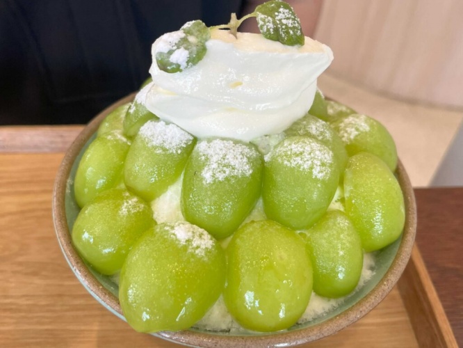 ふんだんに配置されたシャインマスカットが大迫力!マスカットの優雅な甘さと氷やミルクの調和が最高だったそうですよ。