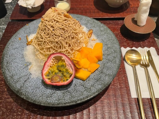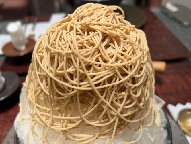 たっぷりのモンブランがおいしそう!寒天と白玉もトッピングされています。