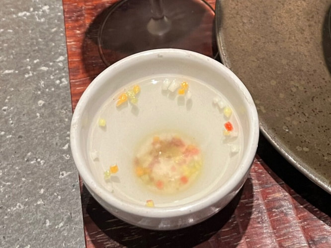 口直しとして梅昆布茶も提供されます。程よい塩味と梅の酸味が食後にぴったりでした。