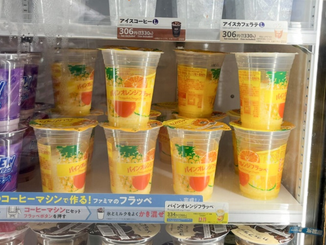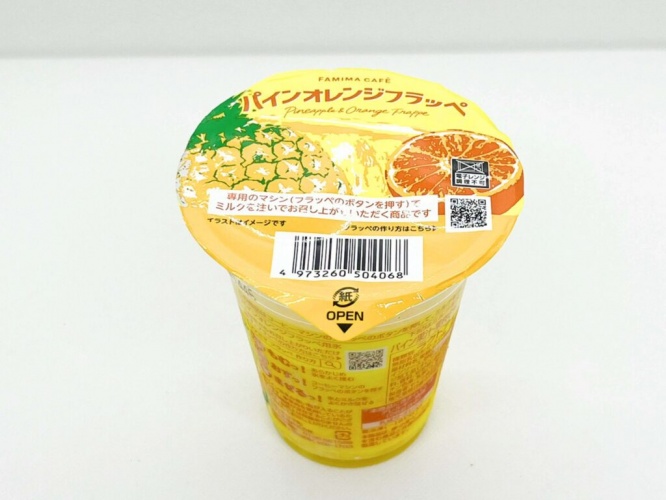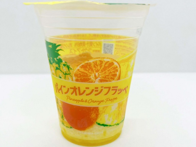 こちらがゲットしてきた「パインオレンジフラッペ」(税込360円)。店頭のコーヒーマシンで作ることもできますが、今回は自宅でゆっくり楽しみたかったので、そのままお持ち帰りしました。