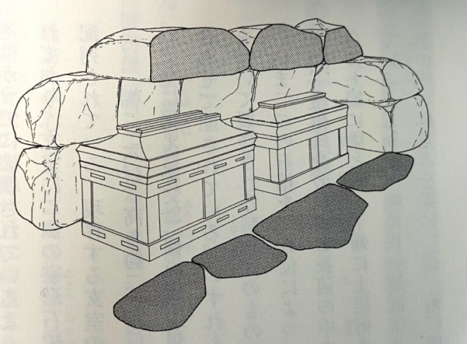 玄室に据えられた2基の家形石棺は、ほぼ同一の軸線上に配置されている。石棺の材質はいずれも竜山石の凝灰岩をくり抜いたものである。