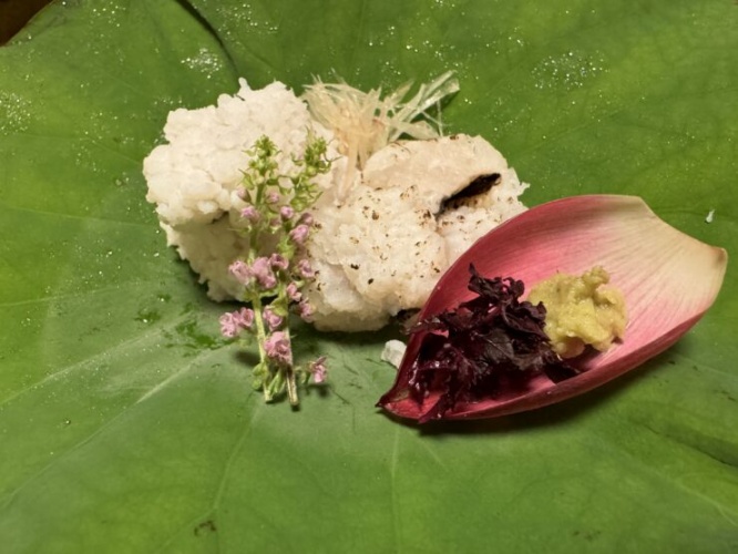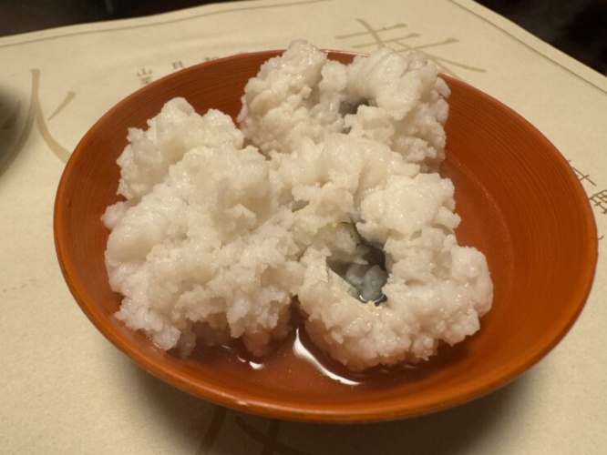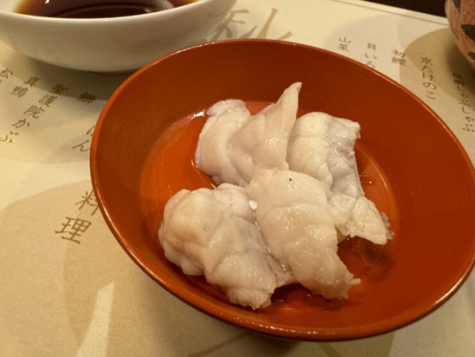 タデの葉を散らした蓼酢で上品に味わうことができます。