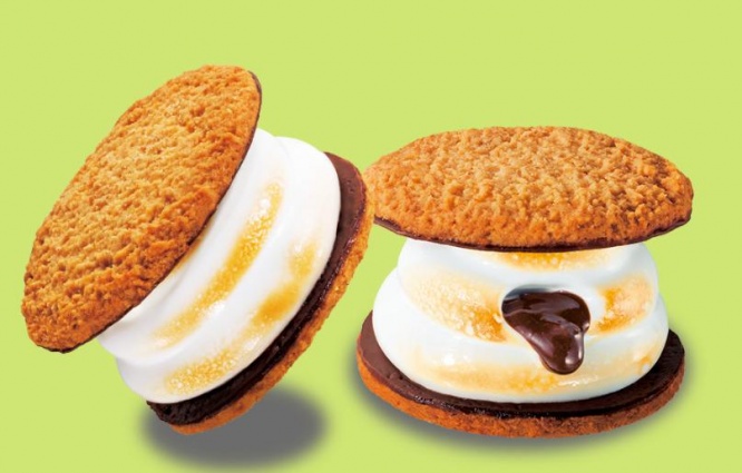 ●ベイクドマロウ「焼マシュマロサンド・ベイクドマロウ」(4個入 790円~)香ばしいグラハムクッキーで、とろとろのチョコレートソースを閉じ込めた焼マシュマロをサンド。クッキーはチョコレートコーテイングがされていて、サクサク食感が維持されています。そのままでも、冷蔵庫で冷やしても、電子レンジで温めてもおいしい、新食感スイーツです。