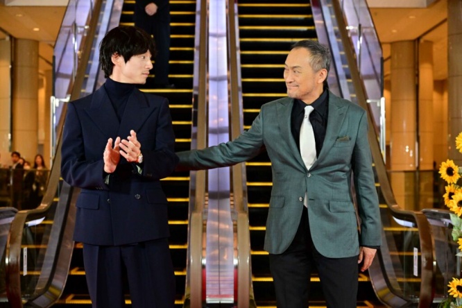 そんな二人は初共演。渡辺は坂口について「彼とは似ている部分がある。オープンマインドで現場が好きで作品が好きでスタッフの事も好き。だから僕も一緒に現場に行きたくなる。そんな感覚を持った稀有な俳優です」と共鳴。大ベテランの渡辺からの絶賛にニヤニヤが止まらない坂口も「とても軽やかな方だとお会いして思いました。お会いする前はケンワタナベという認識でしたが、いい意味で“謙さんってこんな方なんだ…”と思わされた瞬間がありました」とリスペクトしきりだった。