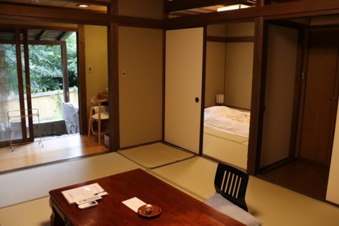 長月、葉月、文月と「月」の名前が付いたお部屋は、縁側からは由布岳が見えます。夜が長くなる秋には、障子に映る月の影が伸びて、和のしつらえのお部屋に映えるとのこと。