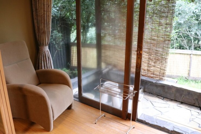そのほか、特別室の宿泊者だけが利用できる貸切の露天風呂もあります。湯布院の緑が湯に映え、白滝川の水音と風の音が心地良い、静かな森の中の露天風呂です。