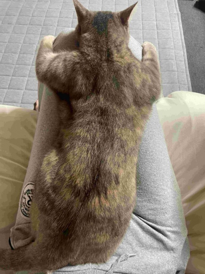 画像協力:「きな あん の日常とその他」(@1025_cocoa)さんこの写真が撮影されたときも、いつもと同じように膝に乗ってきたそう。「可愛いな〜」と思わずパシャリ。今回は“マッチョ”な背中に注目が集まりましたが、飼い主さんにとっては見慣れた風景だったのですね。