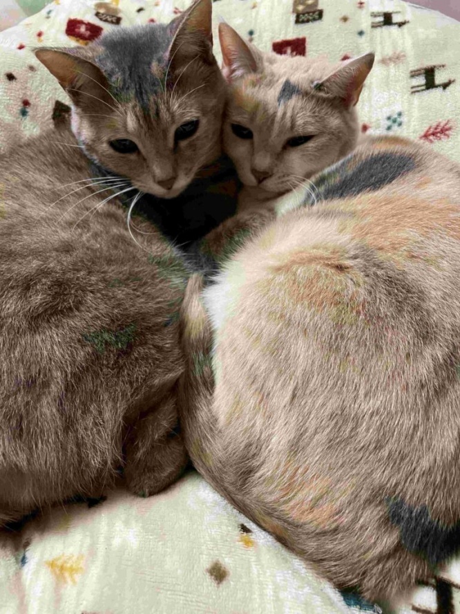 飼い主さんのお家に到着してからも、慣れるまでは寄り添って過ごしていた2匹。「お迎えしたときも、きなの後ろにあんこが隠れているような感じで、きながあんちゃんを守っているように見えました。とても微笑ましかったです」と姉妹の絆の強さを感じ、改めて「二人一緒に連れてきてよかった」と思われたという飼い主さん。