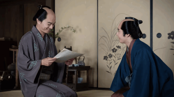 「恩に着るぜ義兄弟」と涙ながらに手を握り頭を下げる蔦重を見つめる歌麿。カメラは背後から映しているので表情はわかりません。このとき、どんな表情をしていたのでしょう。