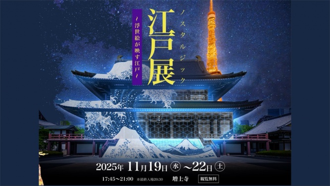 『江戸展 ノスタルジック ~浮世絵が映す江戸~』は2025年11月19日(水)~11月22日(土)の期間、東京・芝公園 大本山 増上寺にて開催されます。入場無料。