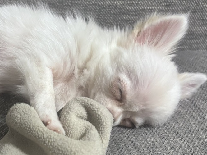 画像協力:「ころころコロン」(@corocoro__colon)さん「袖の部分をキュッと握って寝ているところは、初めて見たので微笑ましかったです。気持ちよさそうにしばらく寝ていたのでこちらもほっこりしました」と安心しきった様子で眠るコロンちゃんの姿は、大切な思い出になったそうですよ。