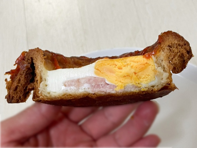 『ベーコンエッグ』は、外側のザクザクした部分が歯ごたえがよくて香ばしく、プルンとした卵の白身との相性が良かったです。黄身の濃厚な旨みがパンの風味に奥深さを与えていました。