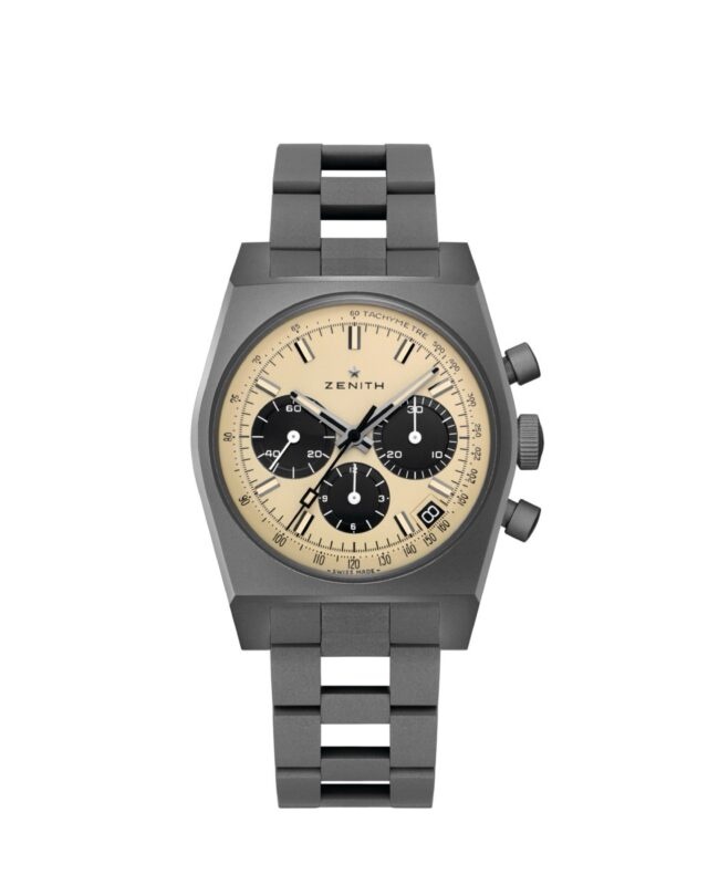 ゼニスはこれまでに3つの限定モデルを製作しており、今回は第4弾となります。最新作は『ルパン三世』に登場した時計をより忠実に再現し、マイクロブラスト仕上げを施したマットブラックのチタンケースを採用。