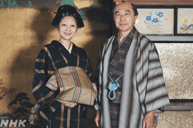実の子同様、蔦重を愛する駿河屋市右衛門(右)とふじ。NHK「べらぼう」公式サイトより
