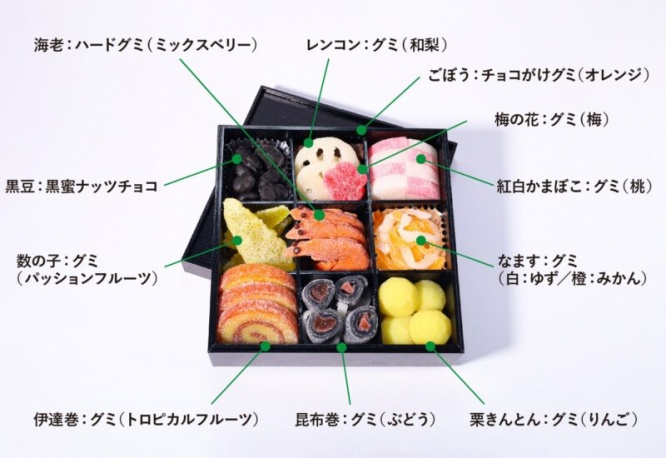これなんと全てお菓子!パパブブレ「グミおせち」が予約受付開始。ハーフサイズもあるよ!