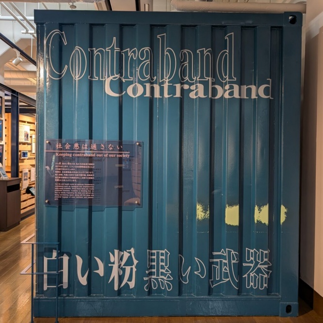 原寸大のコンテナ展示の隙間には覚醒剤がびっしり!原寸大のコンテナの壁に覚醒剤が隠されていた実例を再現した展示は迫力があり、つい目を凝らして見入ってしまいました。映画の中にしか存在しないと思っていたような出来事が、港のすぐそばで現実として起きていたのだと考えると、胸にずしりとくるものがあります。